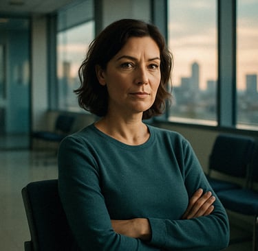 She doesn’t bring a handbag. Just a pale blue folder marked “Medical Records” in quiet, sensible font. Inside: copies of old intake forms, test results with someone else’s date of birth she’s adopted as her own, and a neatly folded page of rehearsed symptoms. She rotates them. Fatigue. Numbness. “Temporal dislocation.”