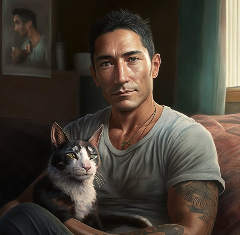 Kai decided that his home would be his kingdom of nakedness. Where others would take off their shoes when they came home, he would take off his clothes, all of it, down to the socks. The only drawback he felt this had was that he was afraid of entering a serious relationship because he was scared that he would have to give up this important freedom. Because he felt that his friends didn't really try to understand, he found solace in a feline companion he adopted from a local shelter. Kai knew he could trust that cat with his secret and was sure the cat didn't mind seeing him naked all day and night.
